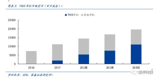 除此之外,各大芯片廠商也紛紛順應(yīng)TWS無線耳機(jī)的趨勢,推出了一系列支持TWS無線藍(lán)牙耳機(jī)的產(chǎn)品。隨著藍(lán)牙5.0技術(shù)普及,無線藍(lán)牙耳機(jī)的成長勢頭良好,未來幾年有望迎來爆發(fā)式的增長。